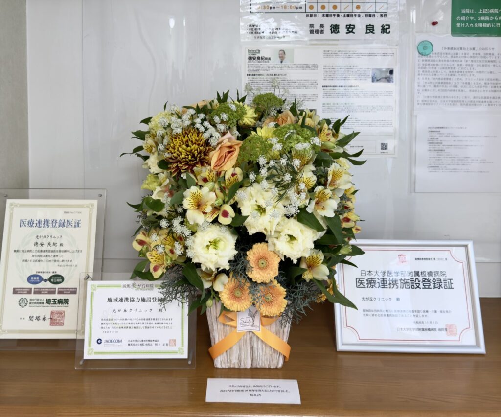 このたび、スタッフより開業20周年のお祝いとして、心のこもった花束をいただきました。